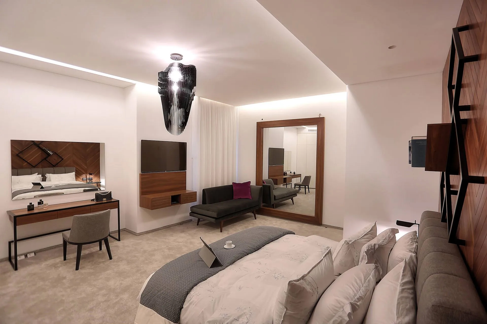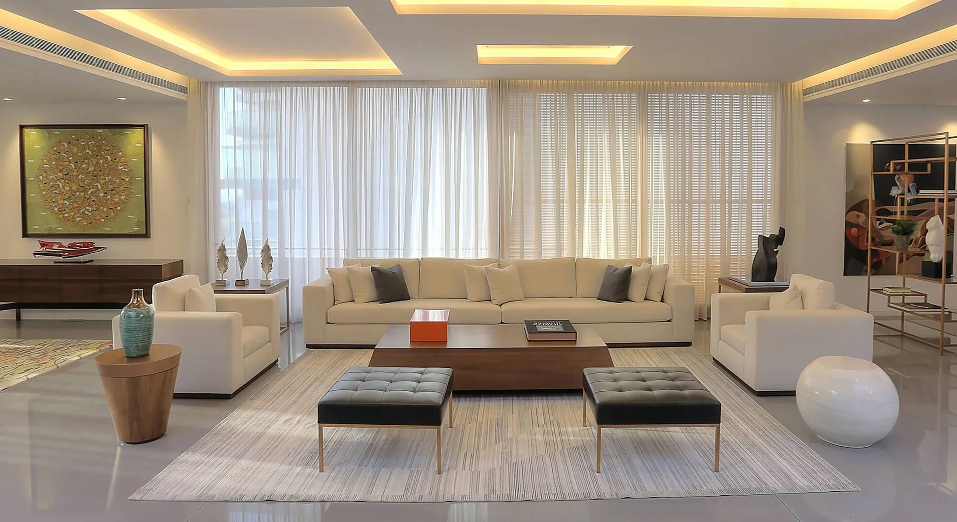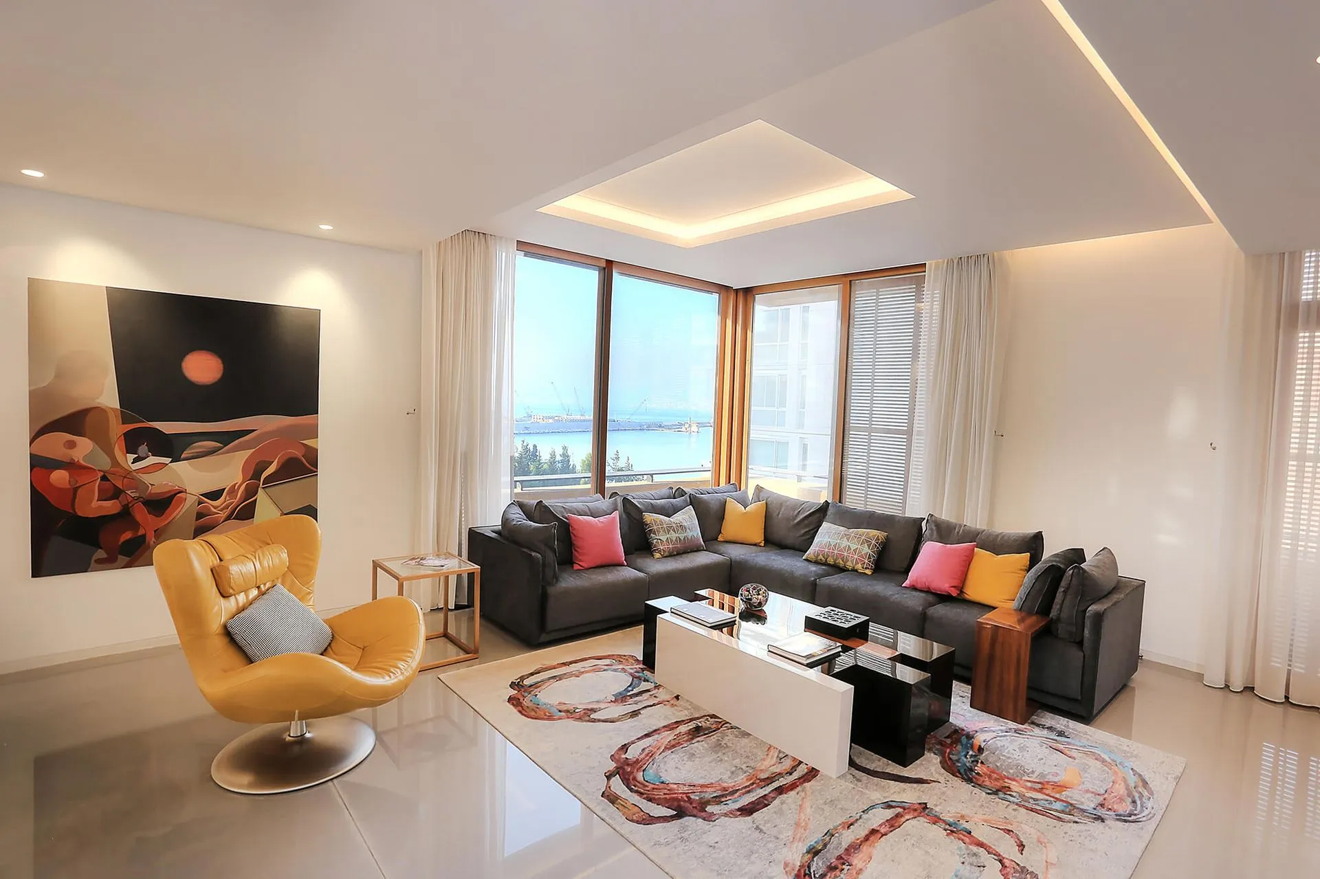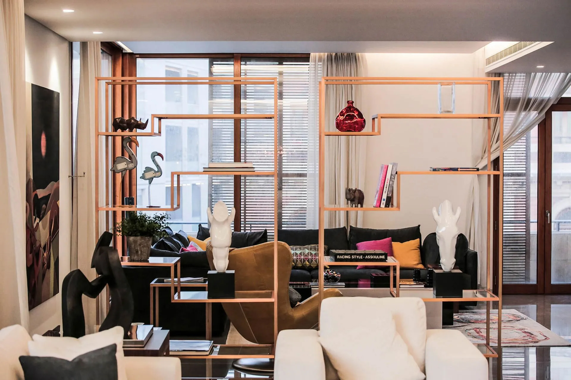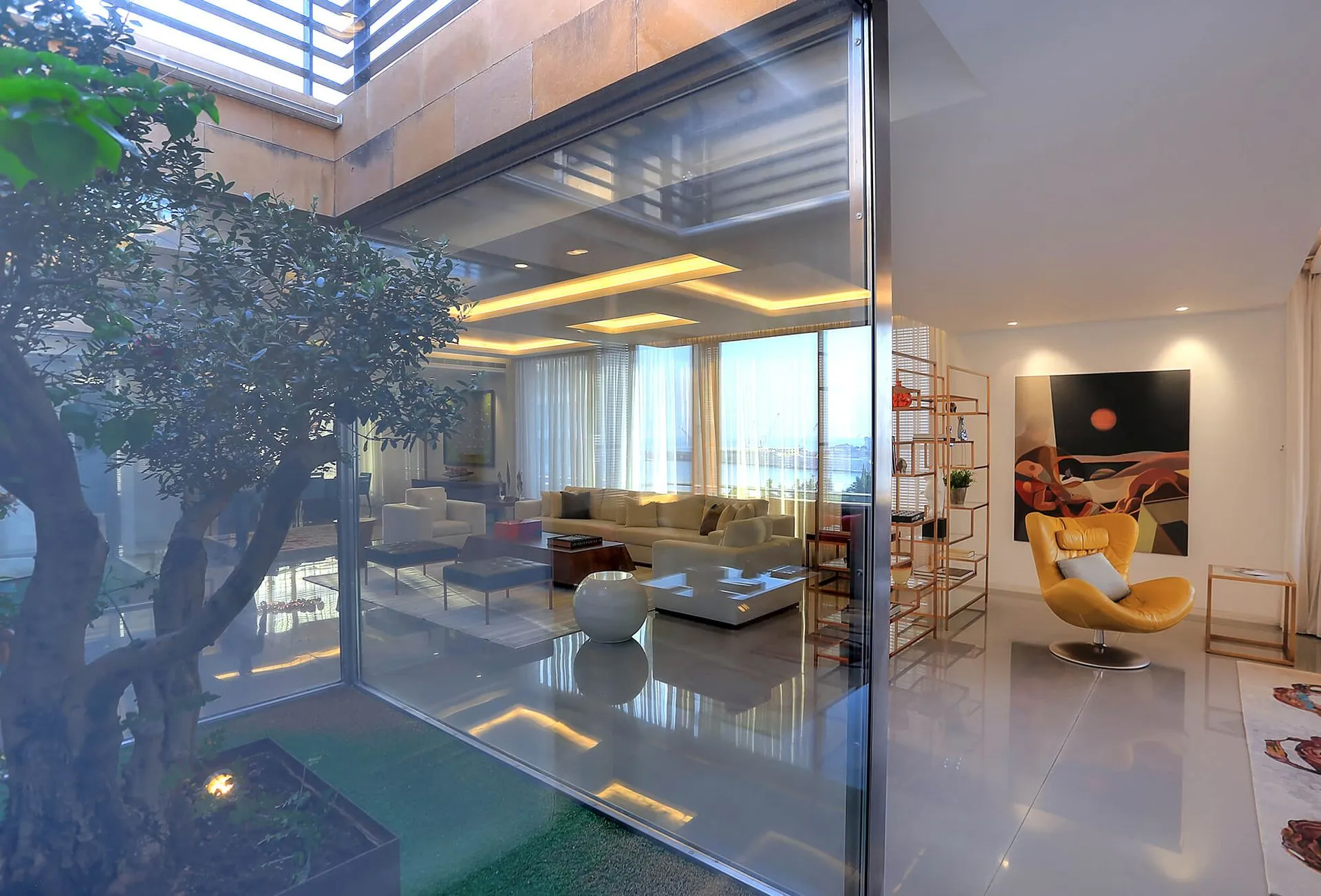 Foch Penthouse is a masculine, hotel-like interior penthouse on the most prestigious street in Downtown Beirut. Using simple lines and comfortable, deep, and safe room colors using marble, metals, and wood, emphasizing the beauty and elegance of these materials to complete the style and to reflect the homeowner’s lifestyle and taste.
