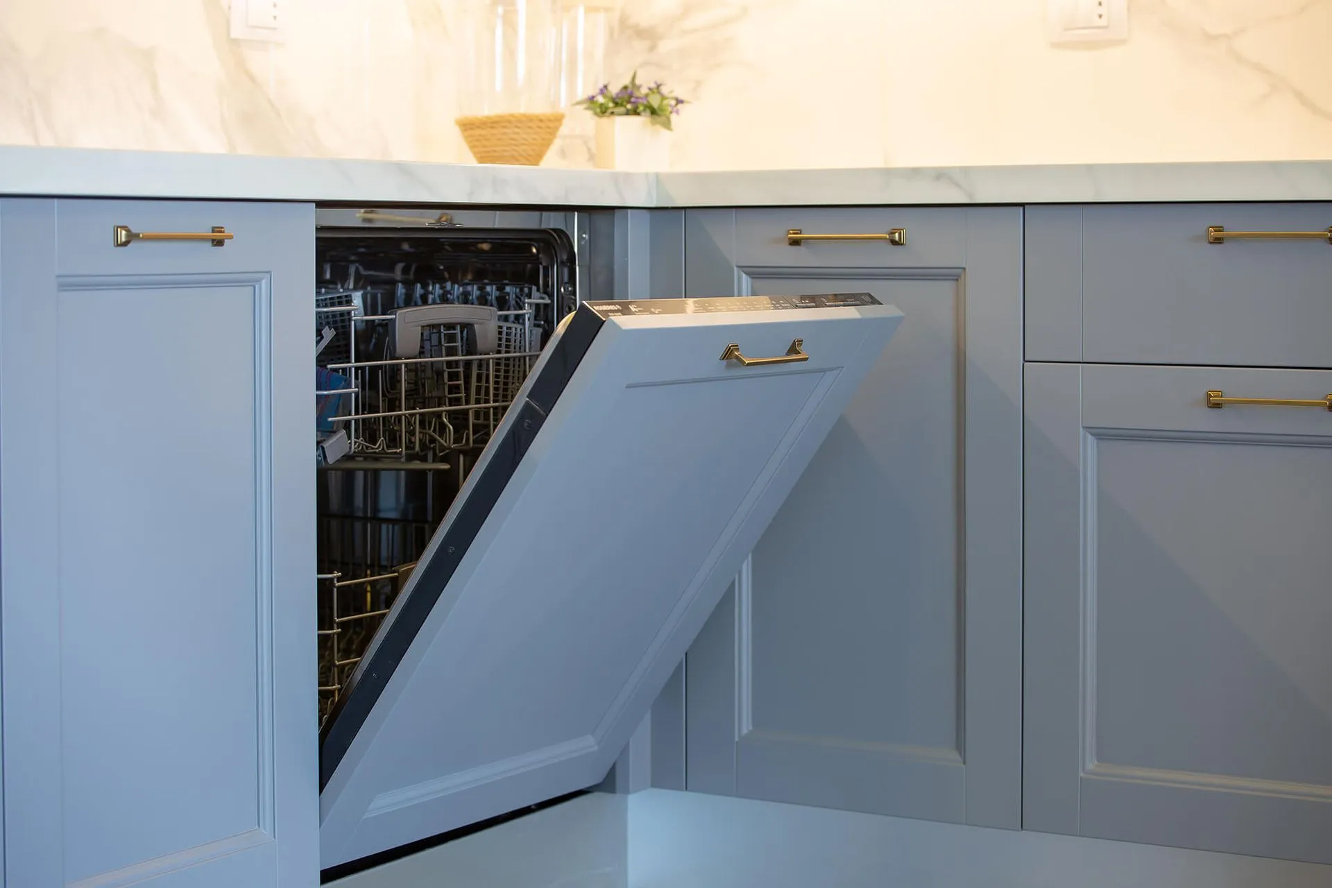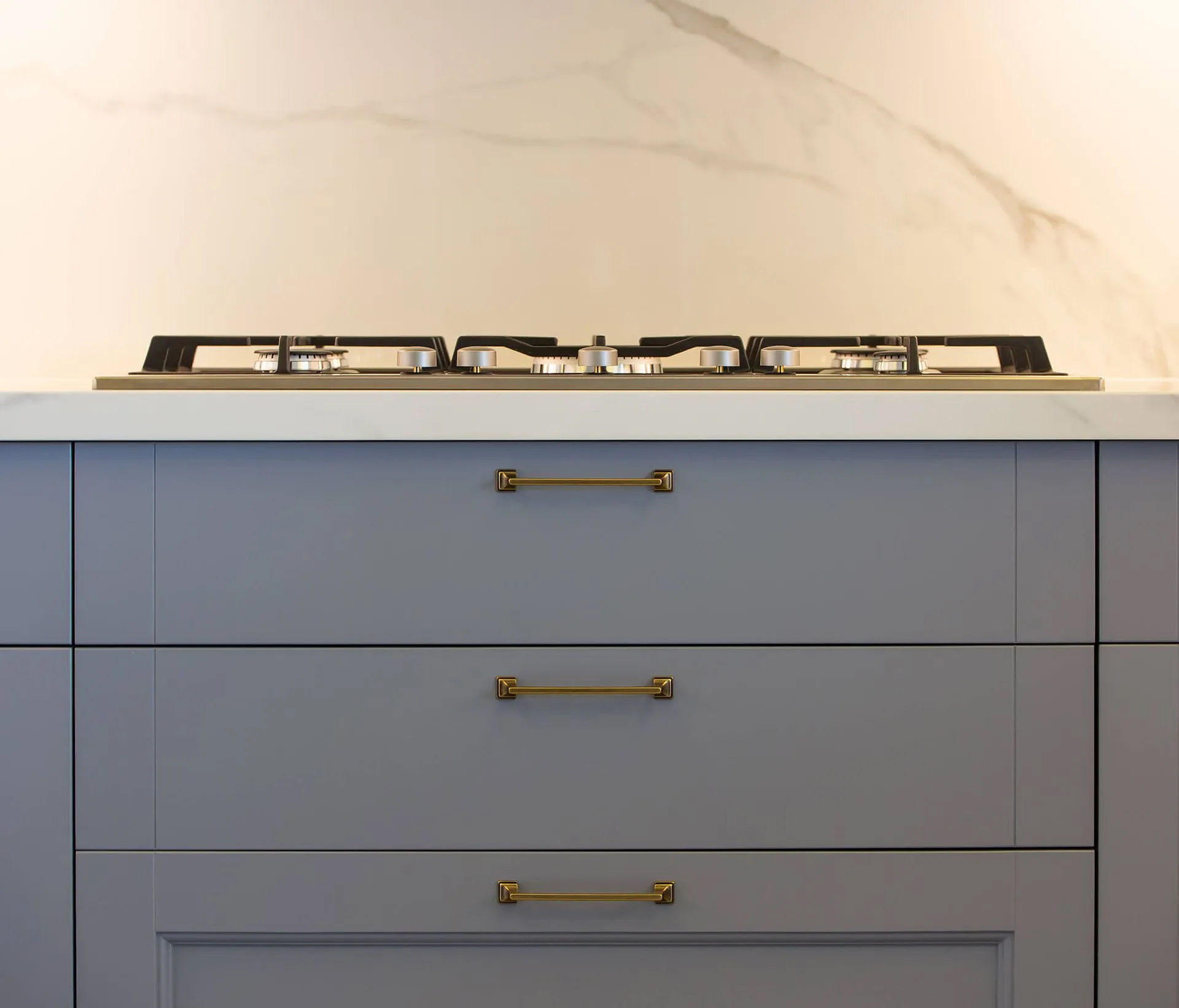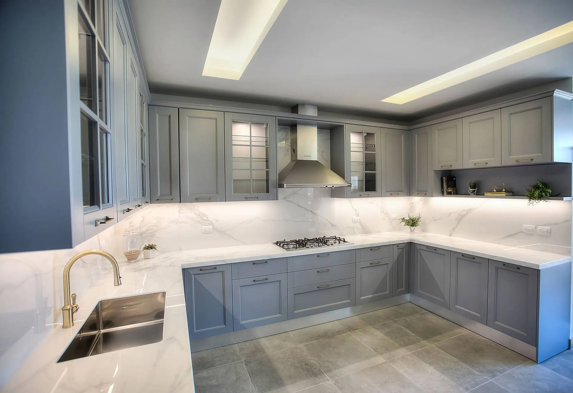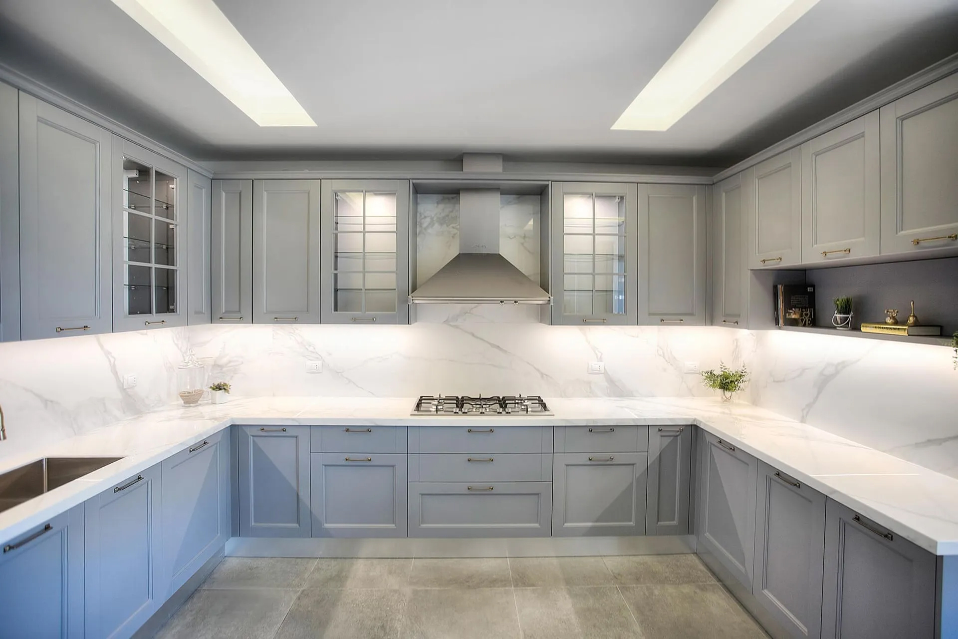 Refined, timeless, and quietly elegant, the Grey & Grace Kitchen is a study in balance and functionality. Designed by May Jbara Design Studio, this custom kitchen merges classic shaker-style cabinetry with a soft, modern color palette of warm greys and subtle blue undertones.