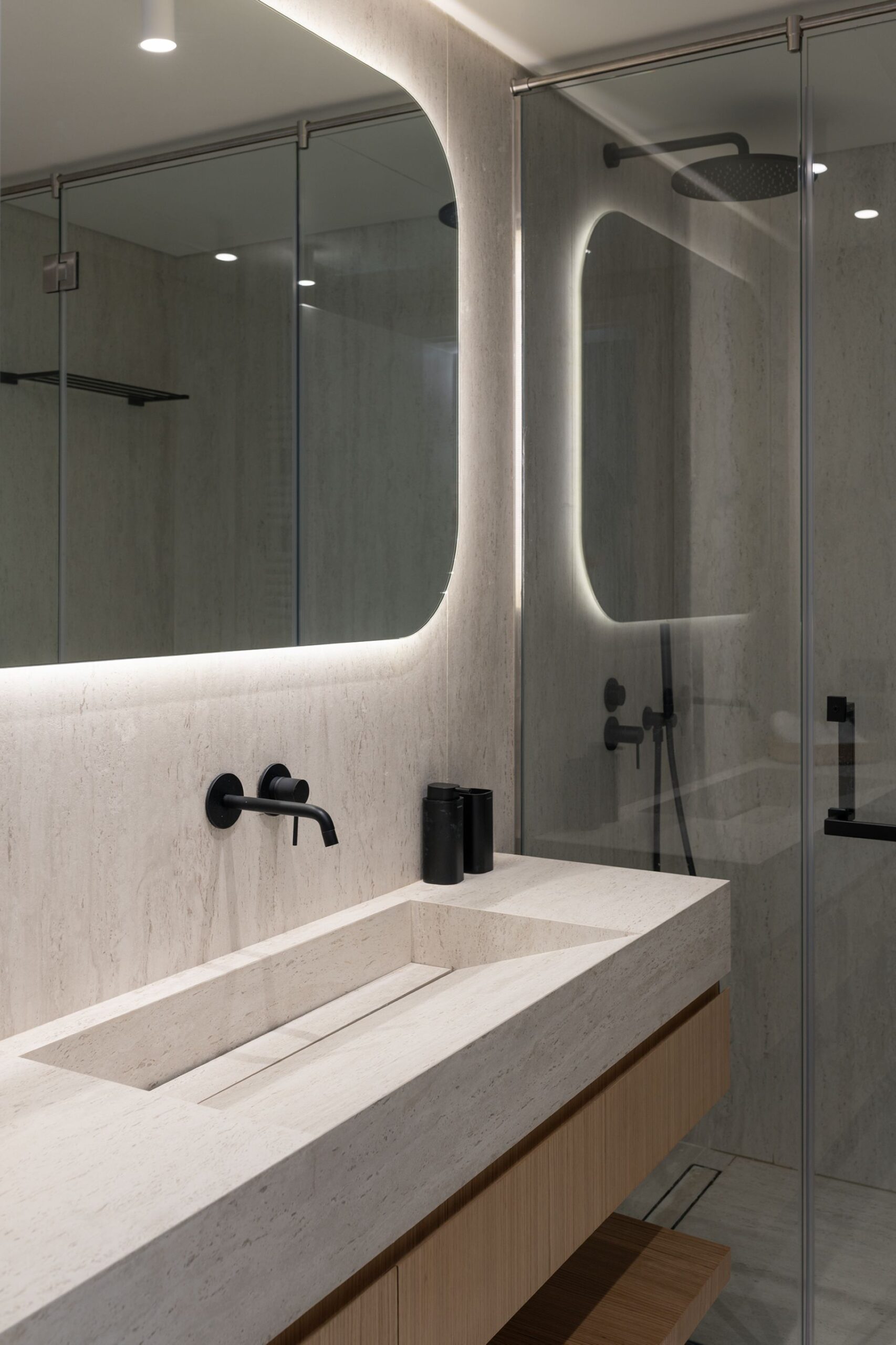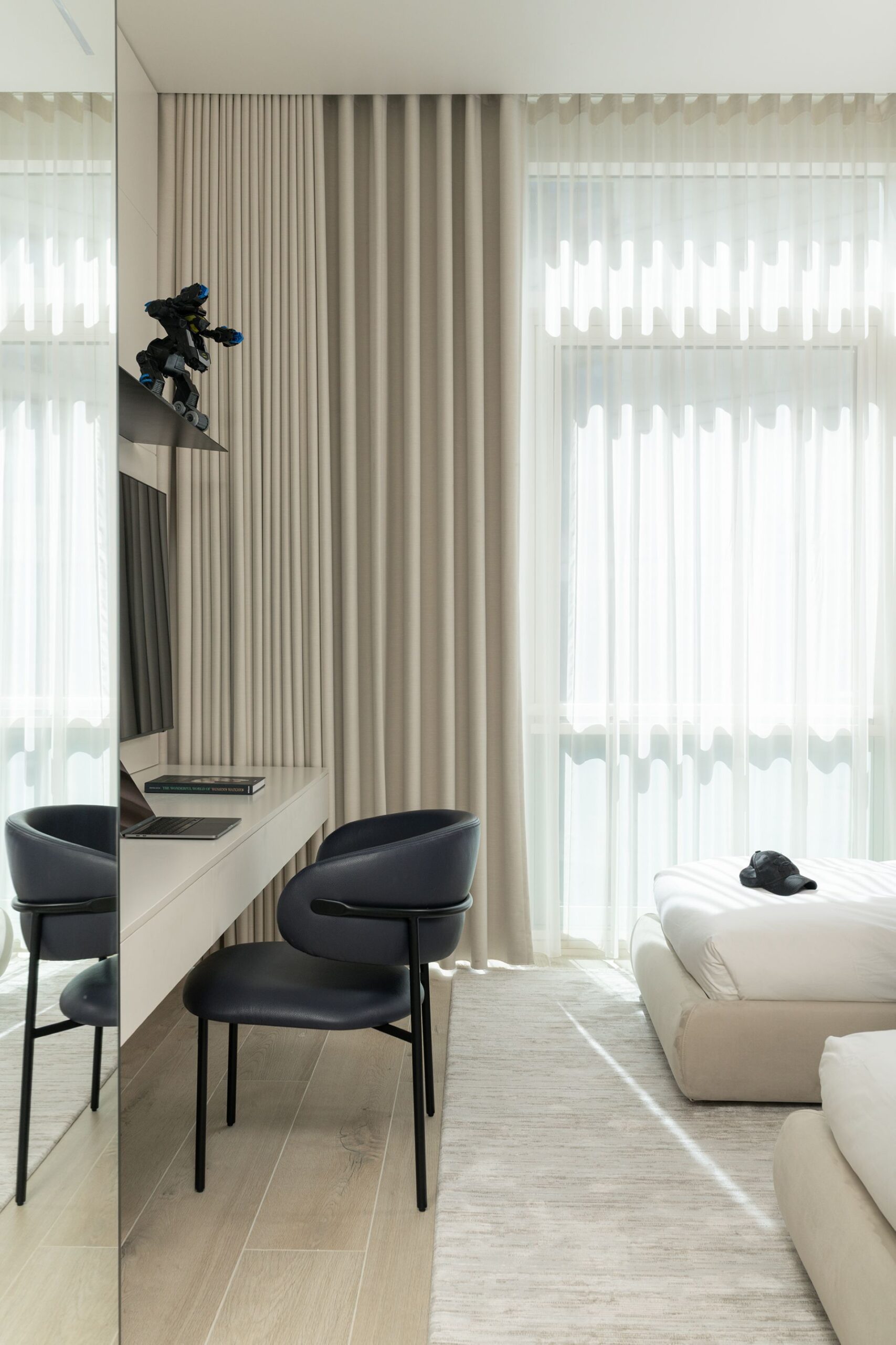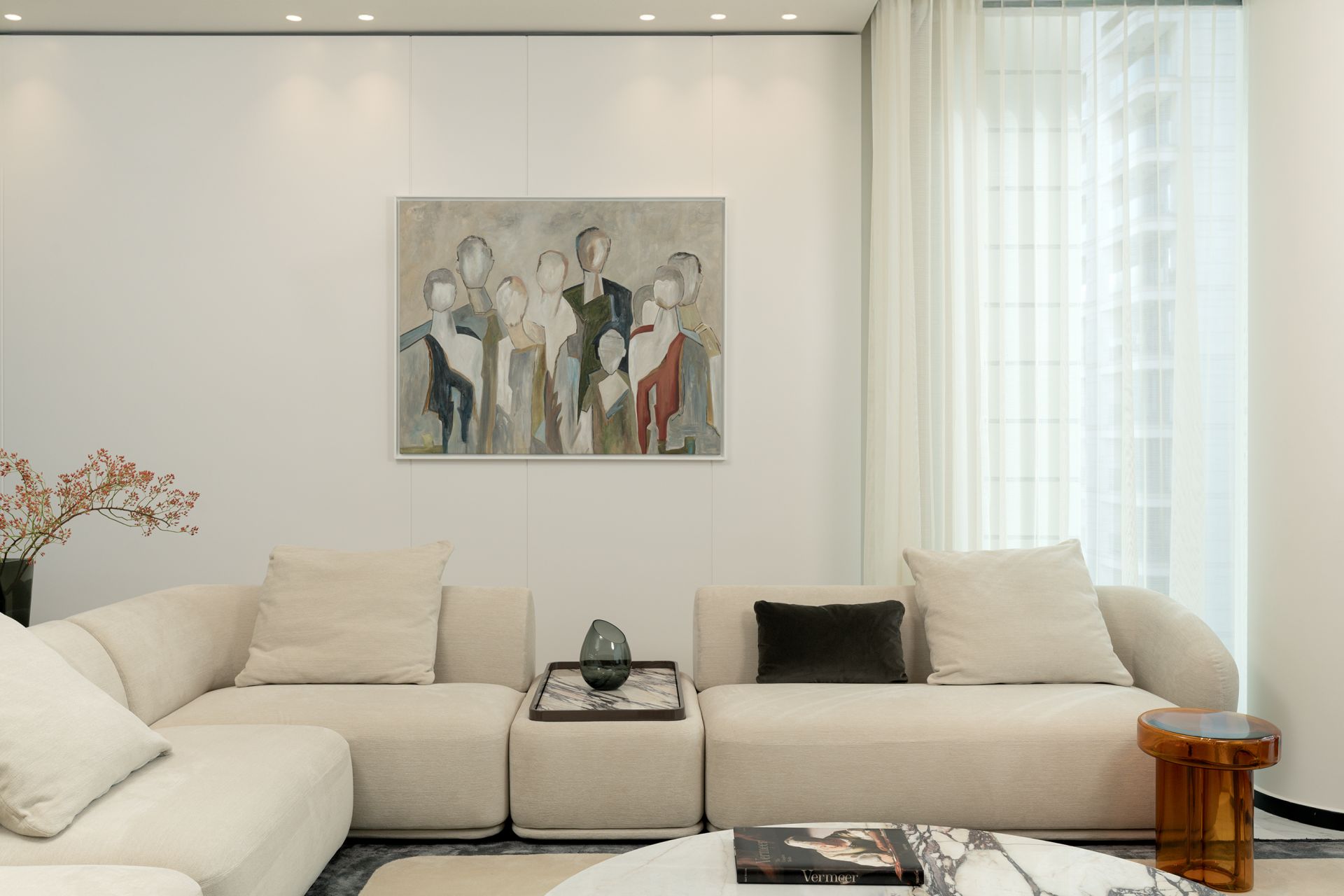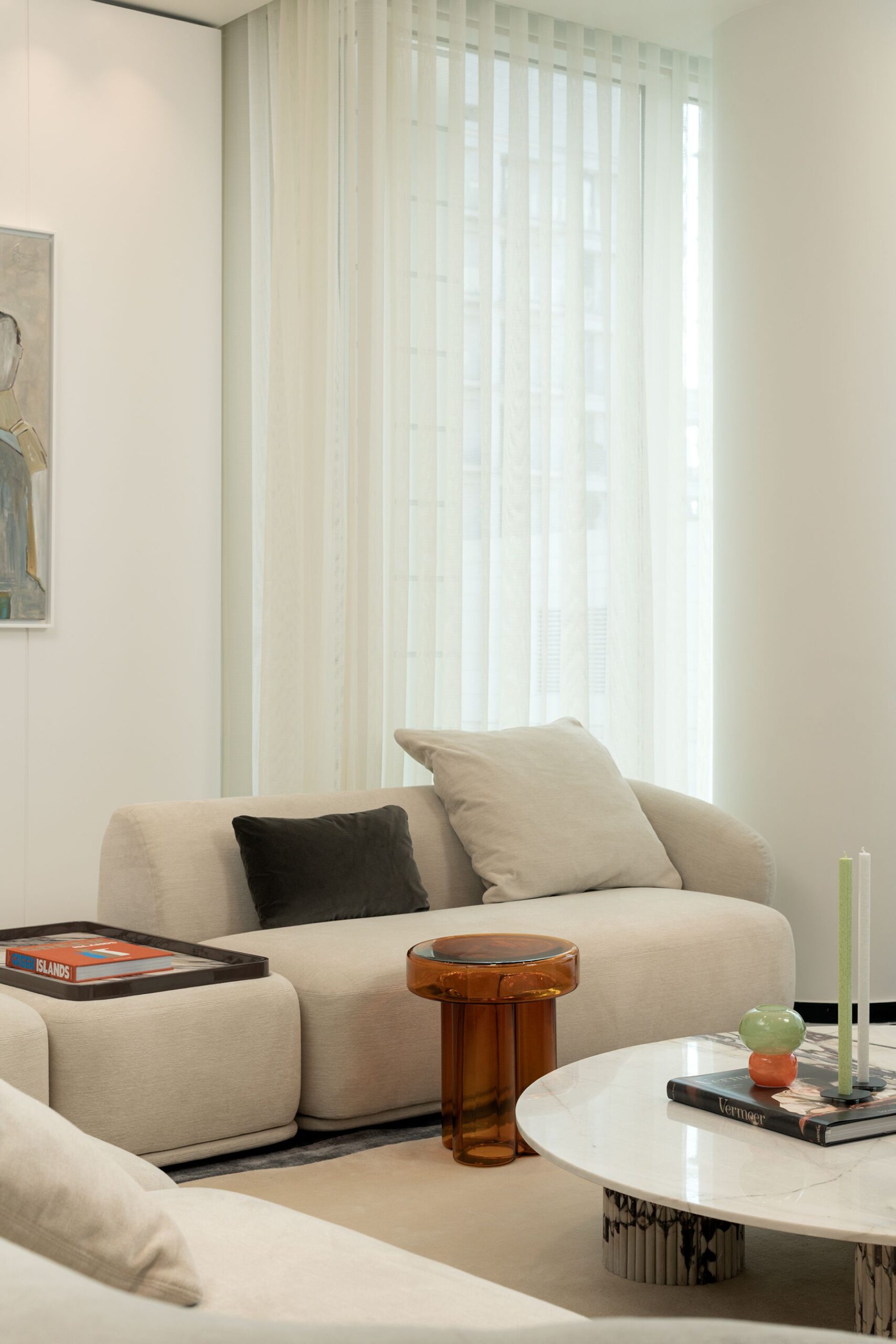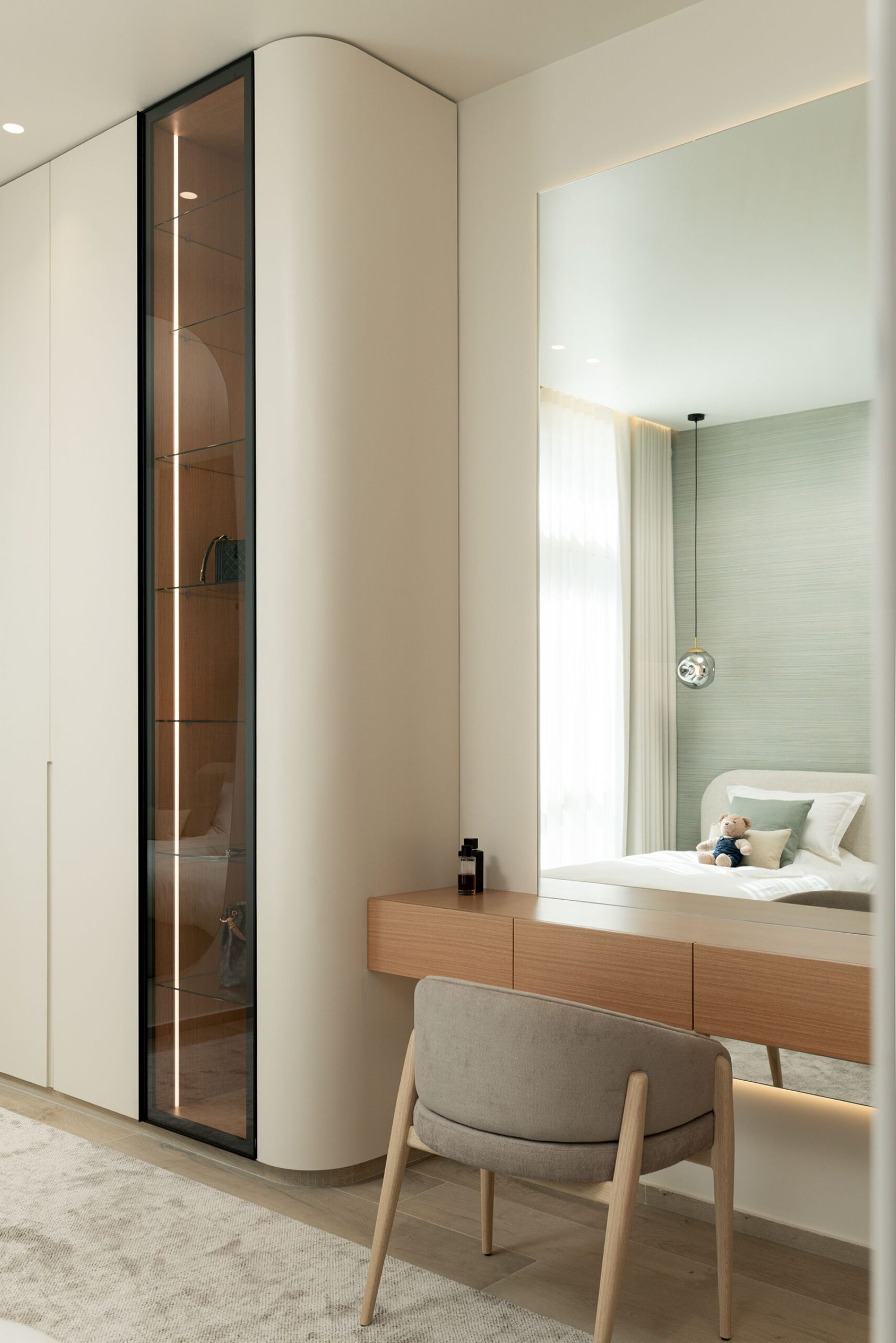 Every detail of this project has been meticulously curated—from high end furniture and rare marble finishes to bespoke lighting installations and seamless spatial flow. The interiors feature warm neutral tones, organic forms, and a mix of natural materials that elevate the ambiance of each room.