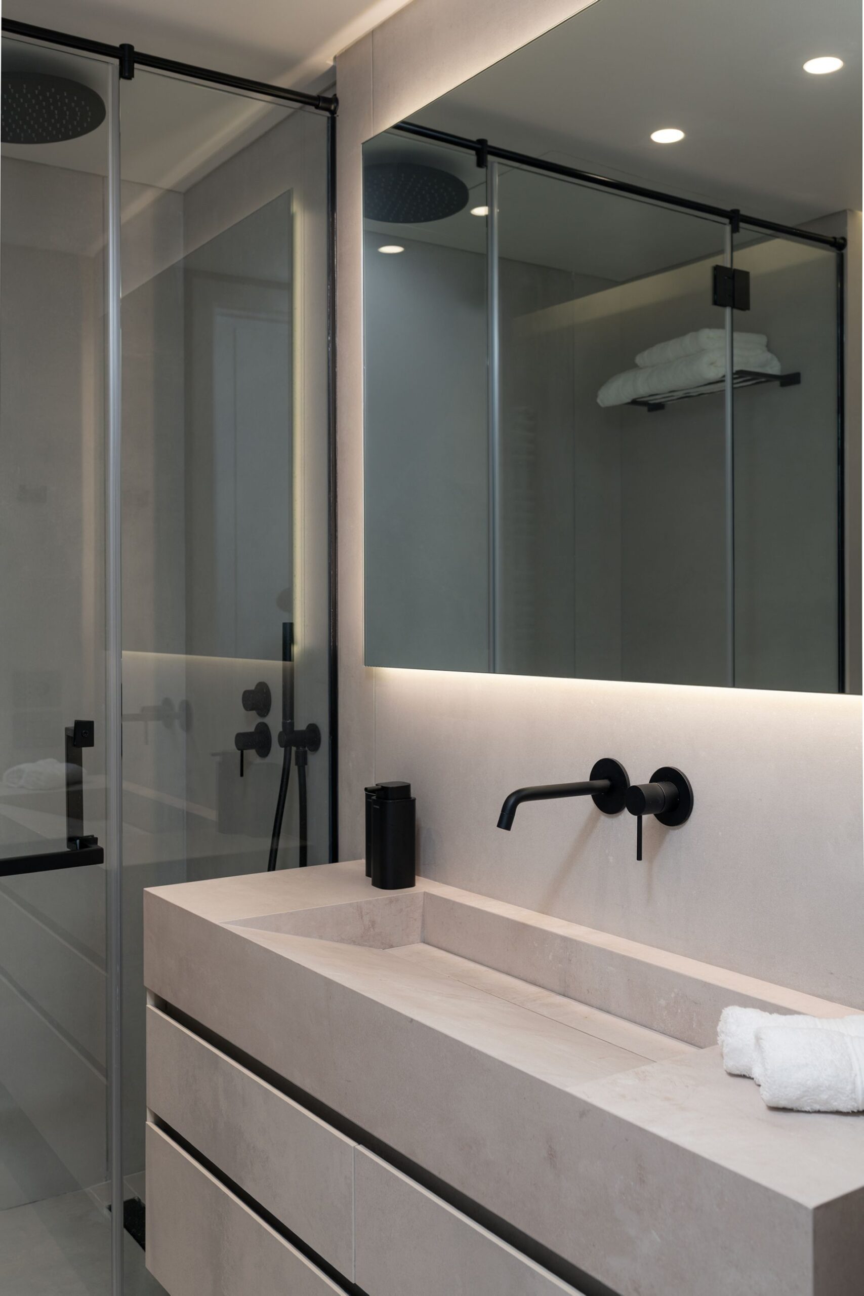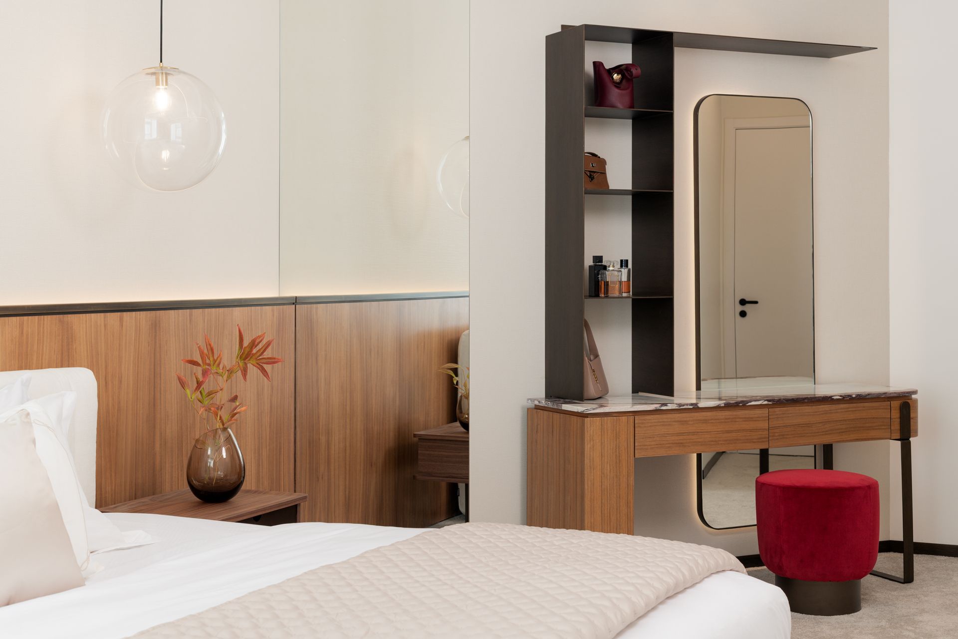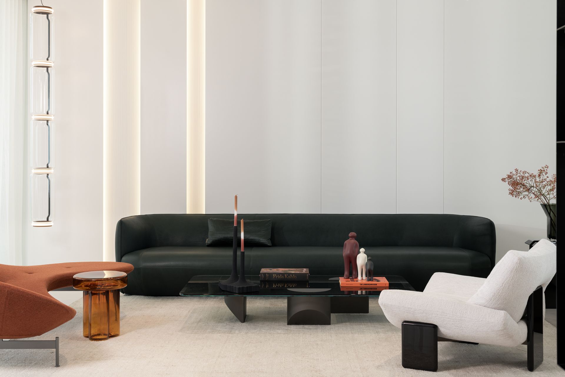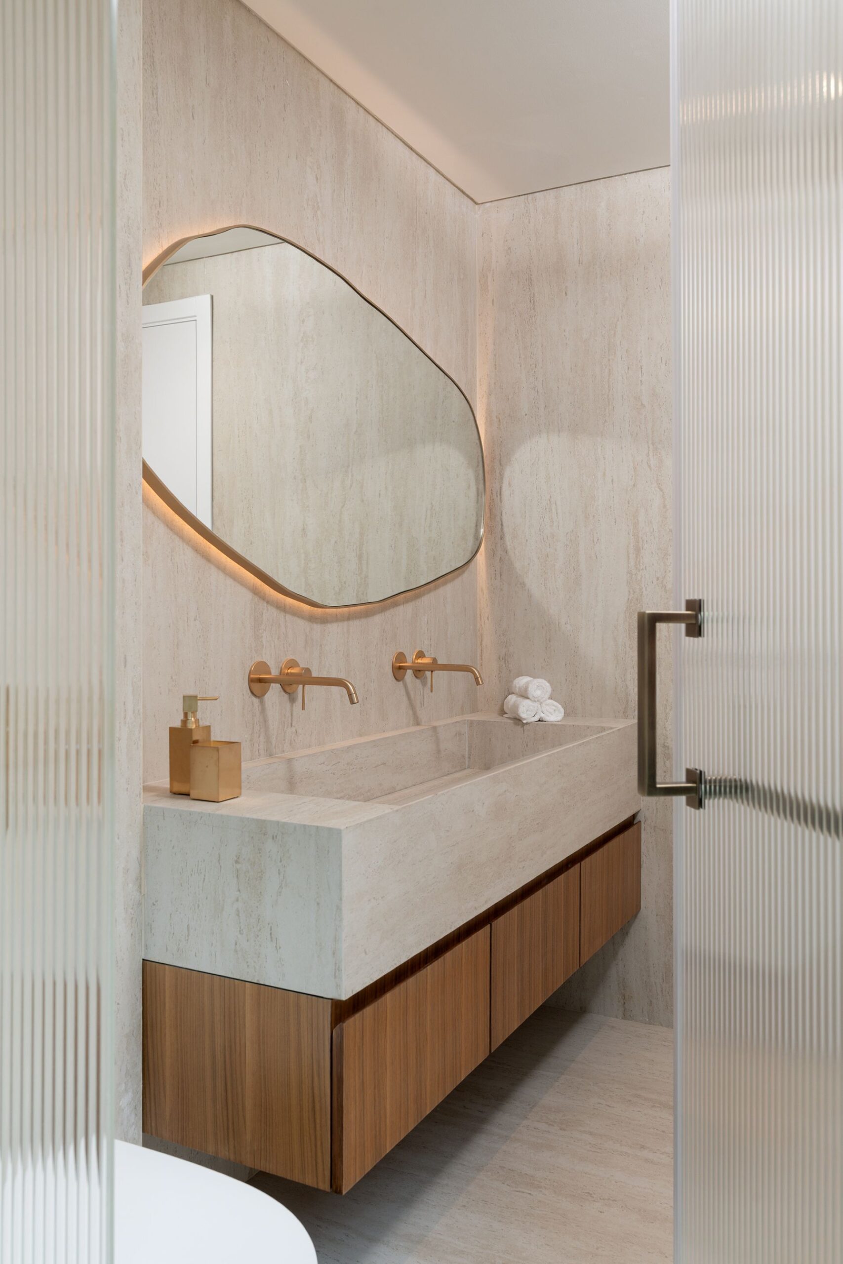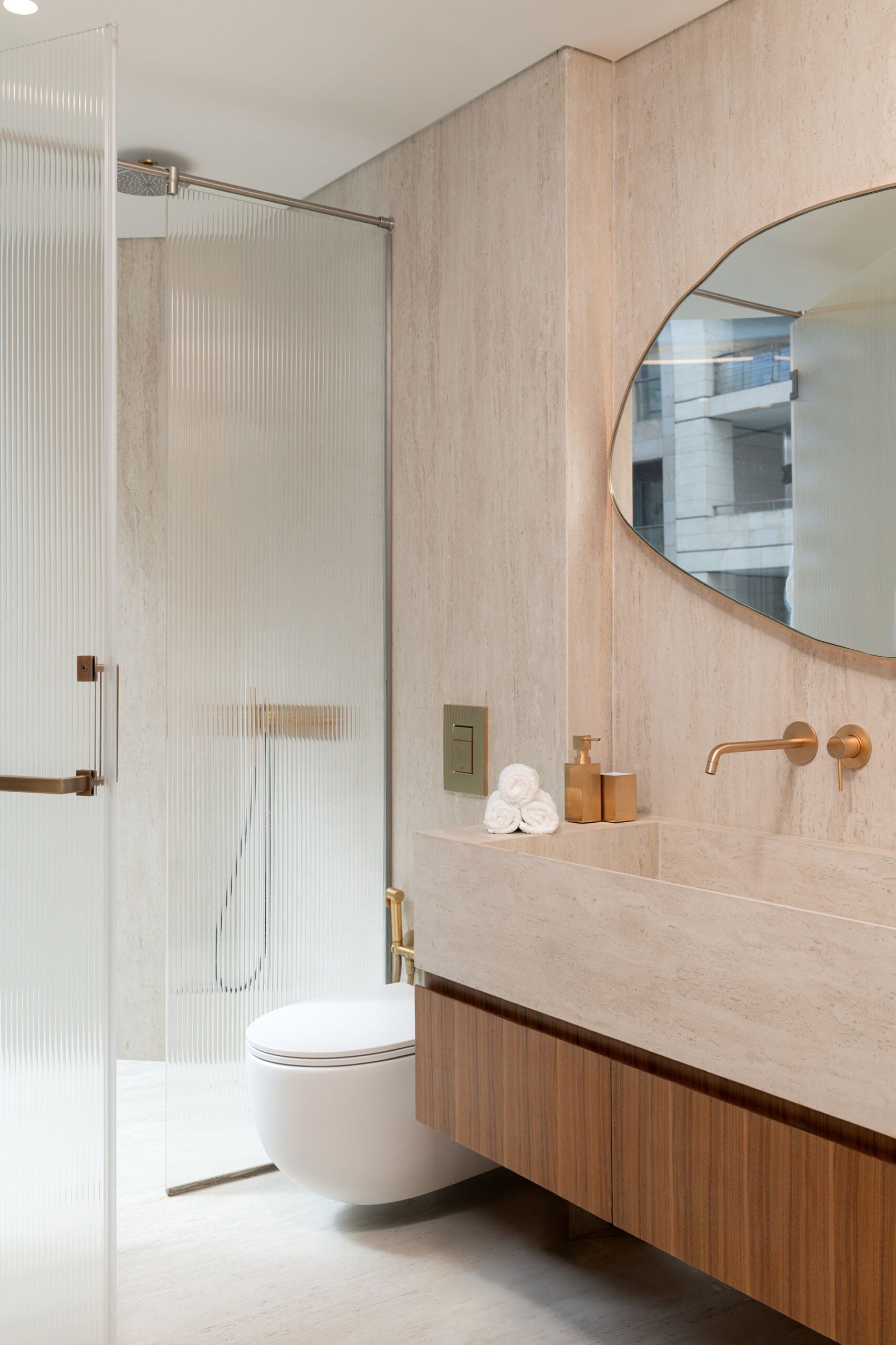 Every detail of this project has been meticulously curated—from high end furniture and rare marble finishes to bespoke lighting installations and seamless spatial flow. The interiors feature warm neutral tones, organic forms, and a mix of natural materials that elevate the ambiance of each room.