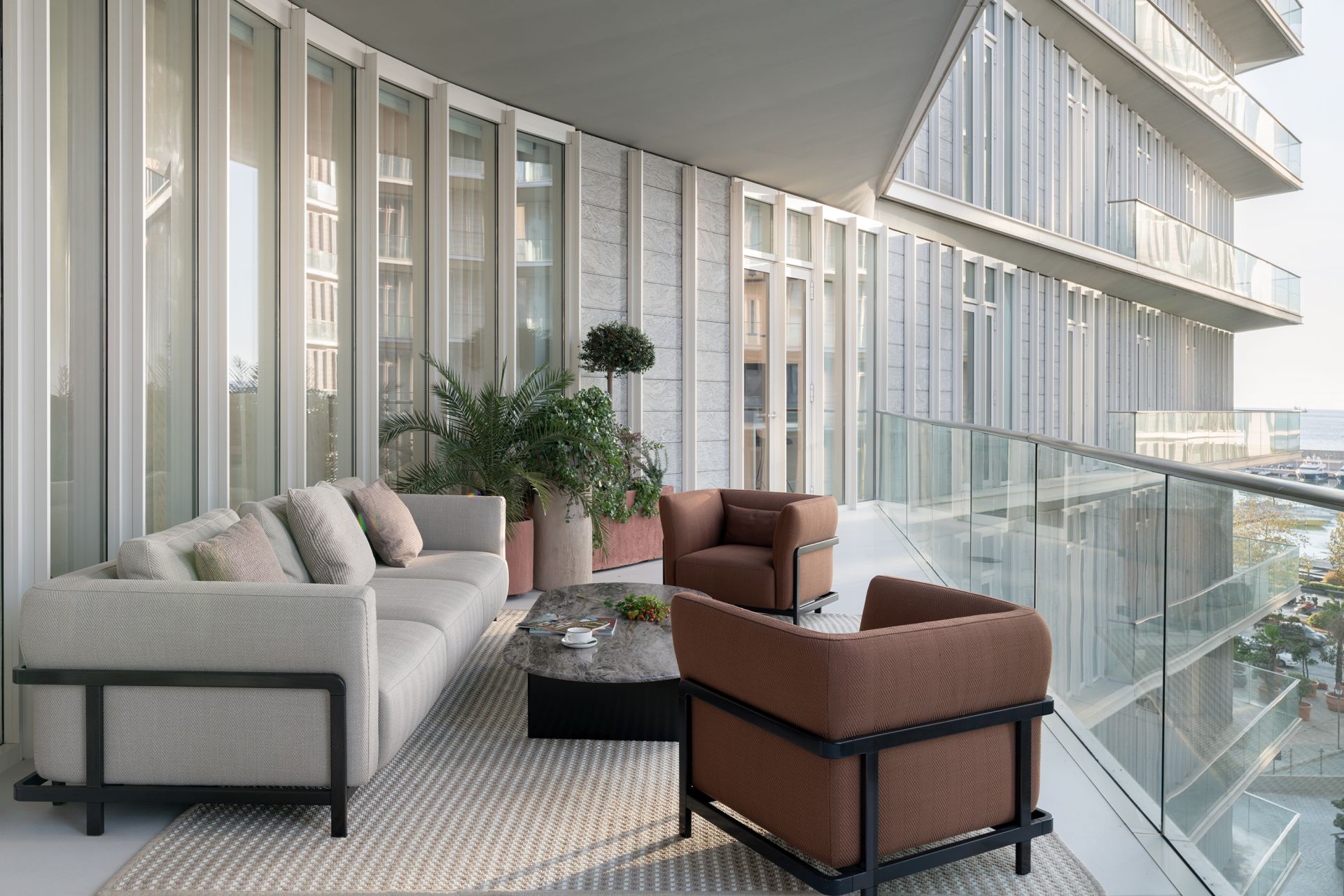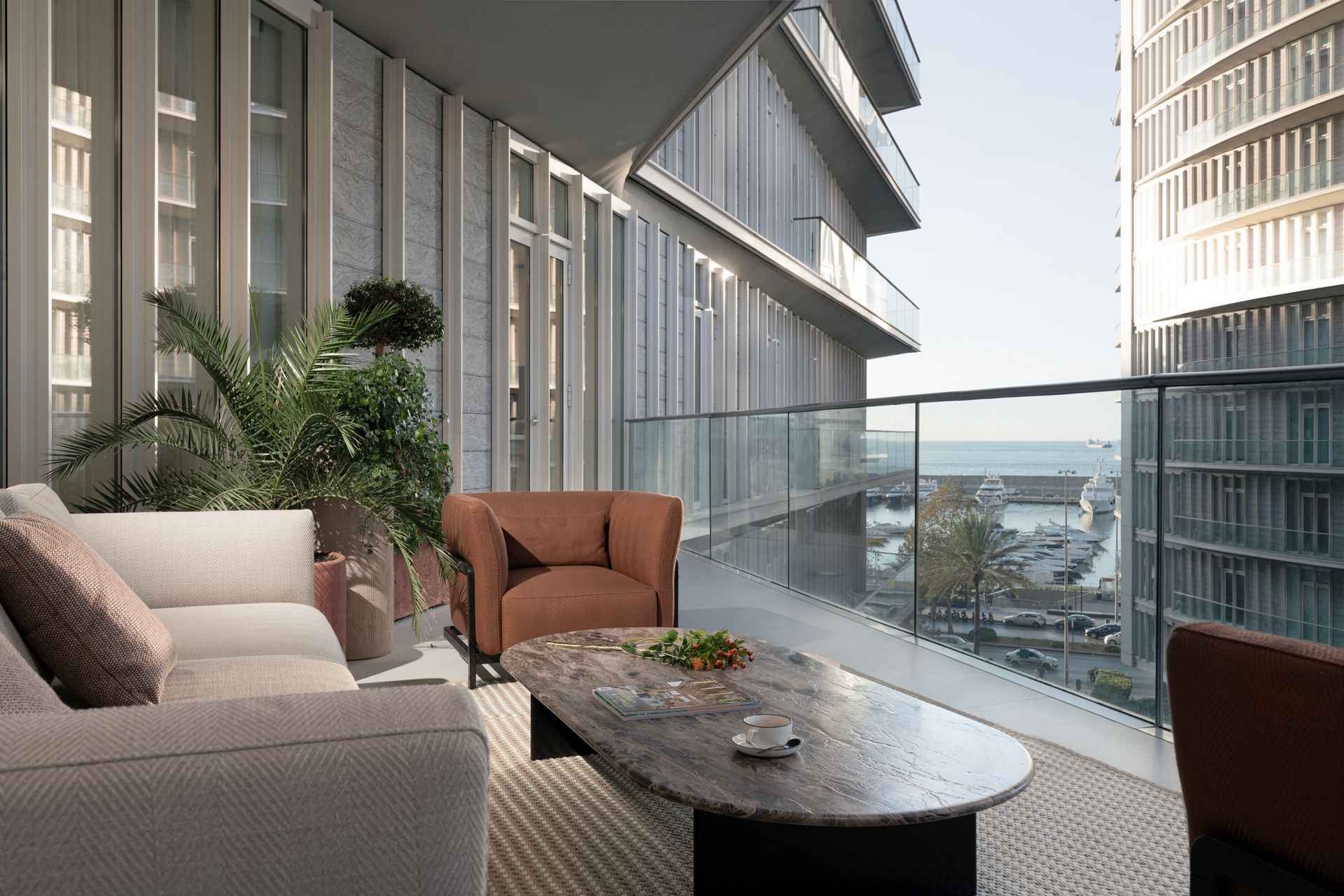 Located in one of Beirut’s most exclusive addresses, this high-end residence in Marina Tower redefines contemporary luxury living on the waterfront. With sweeping views of the Mediterranean Sea and Beirut’s skyline, the design merges timeless elegance with a modern edge.