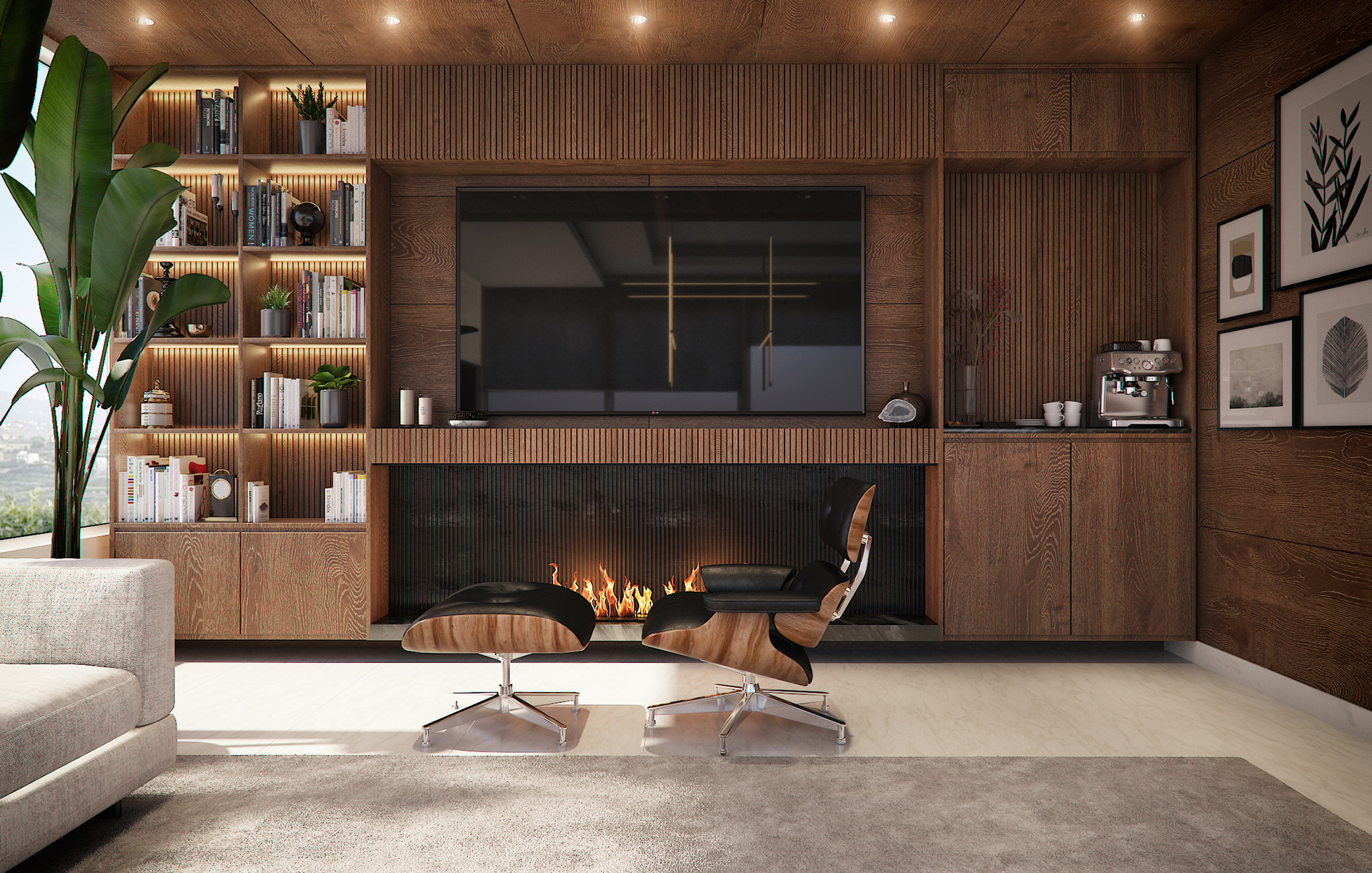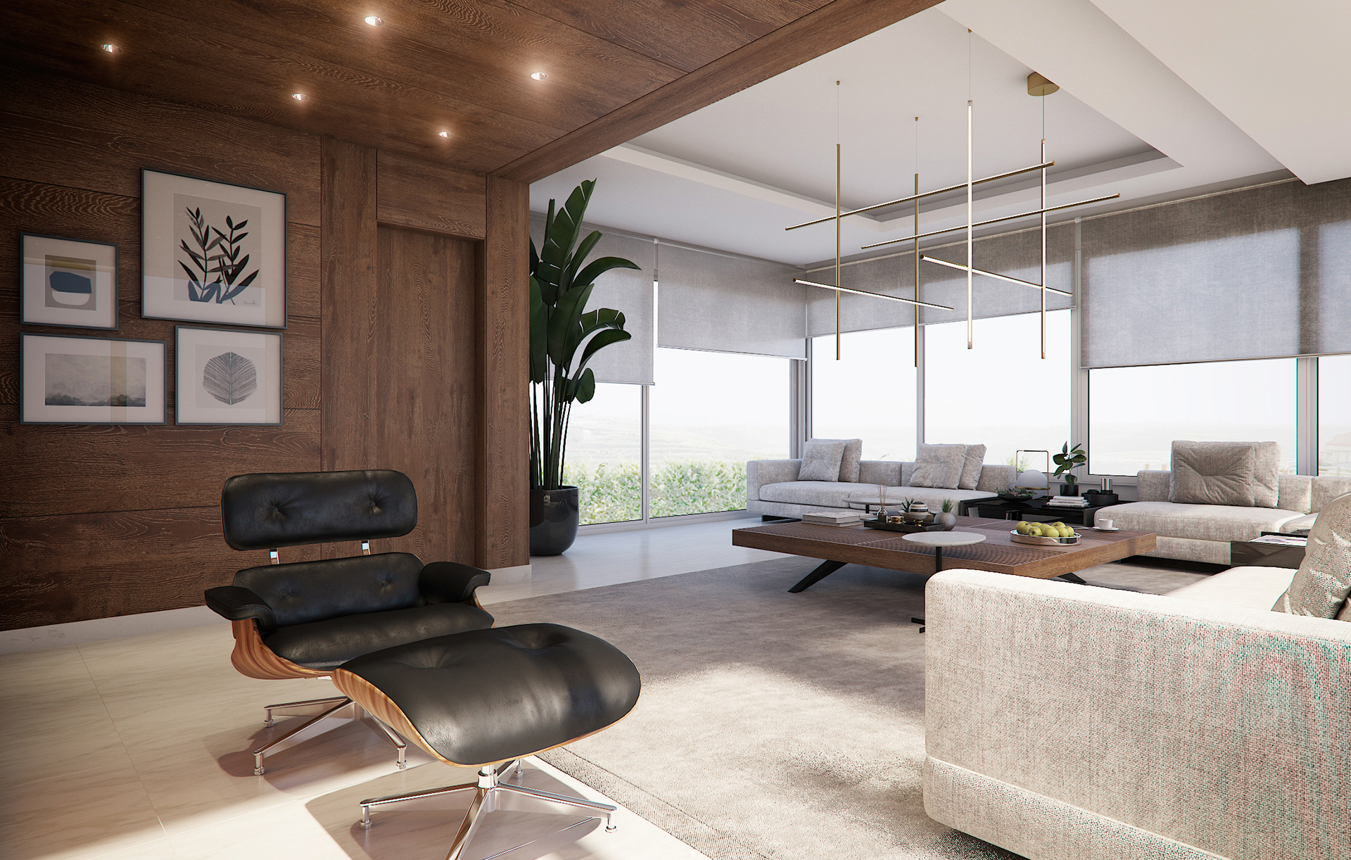 A warm, modern living space where natural light, clean lines, and rich wood textures create a timeless atmosphere. Designed by May Jbara Design Studio, this room blends minimalist elegance with functional luxury for refined everyday living.