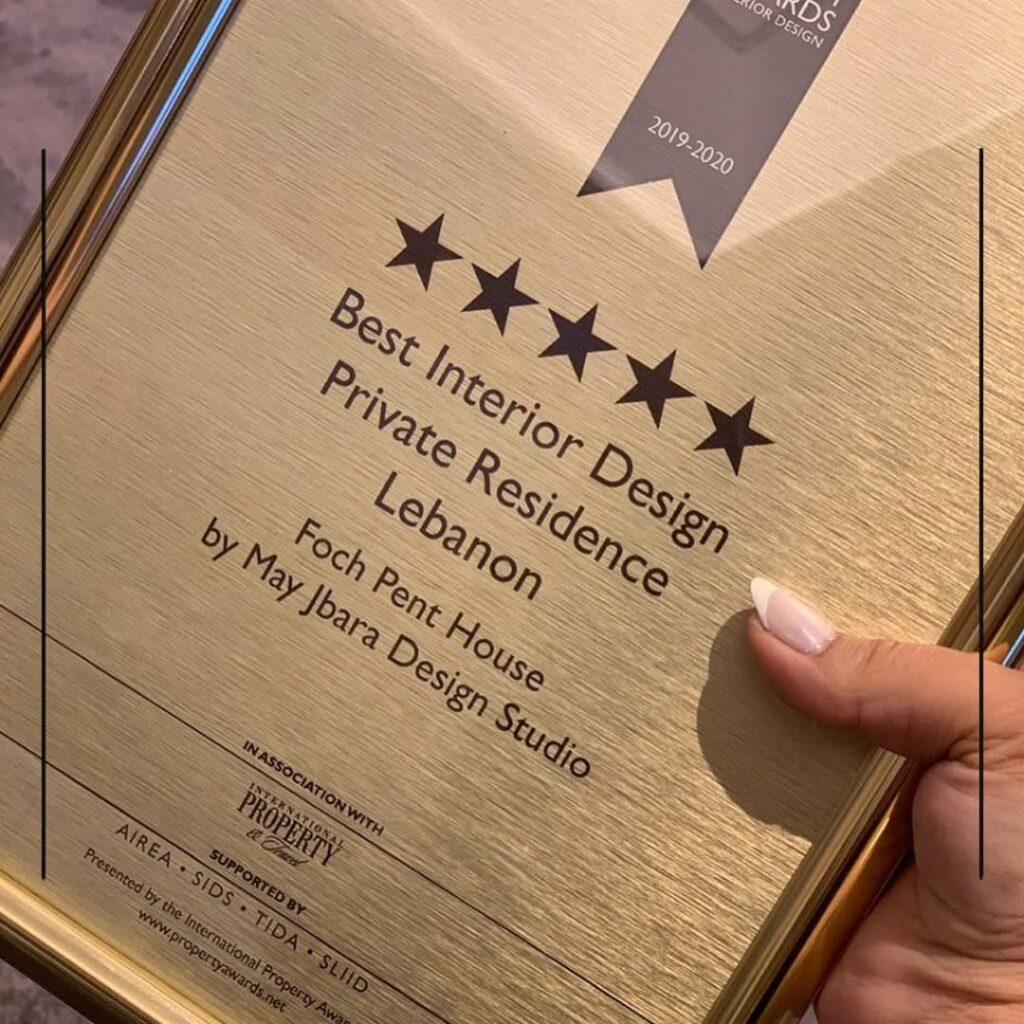 We’re thrilled to share that May Jbara Design Studio has been awarded 5 Stars for Best Interior Design – Private Residence – Arab Region by the Property Awards 2019! The winning project: the stunning Foch Penthouse.